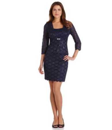 Image Name: Alex Evenings Petite Sequined Lace Jacket Dress
