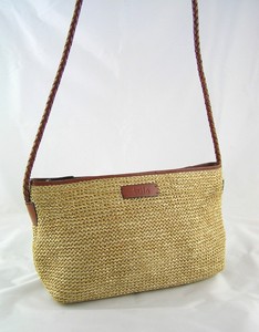 Image Name: Details about TULA STRAW WEAVE BROWN LEATHER TRIM SMALL HANDBAG